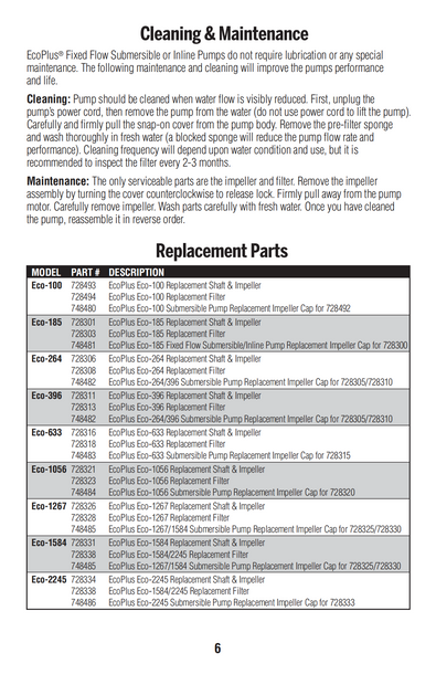EcoPlus Fixed Flow Submersible or Inline Pumps