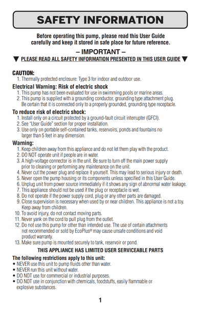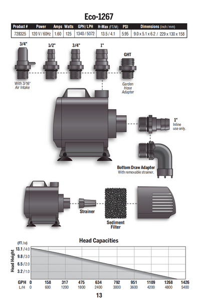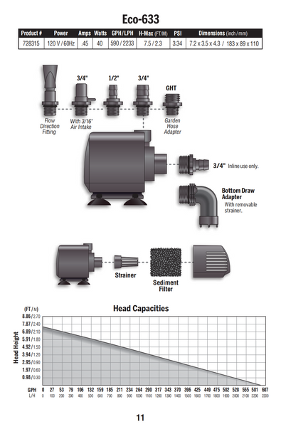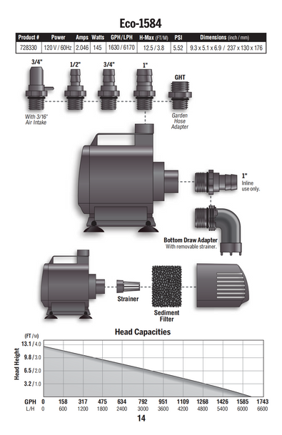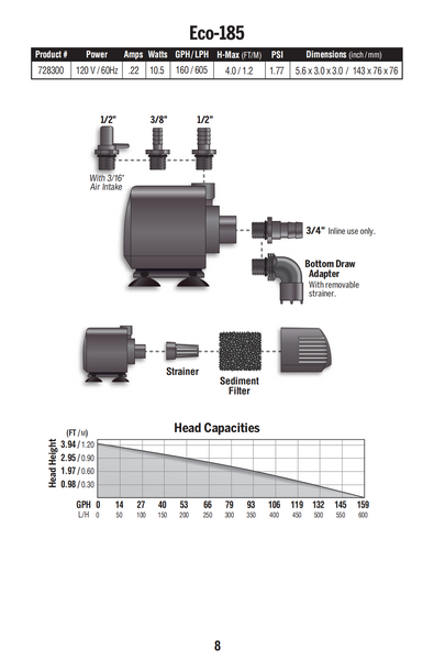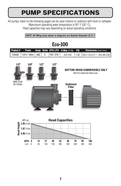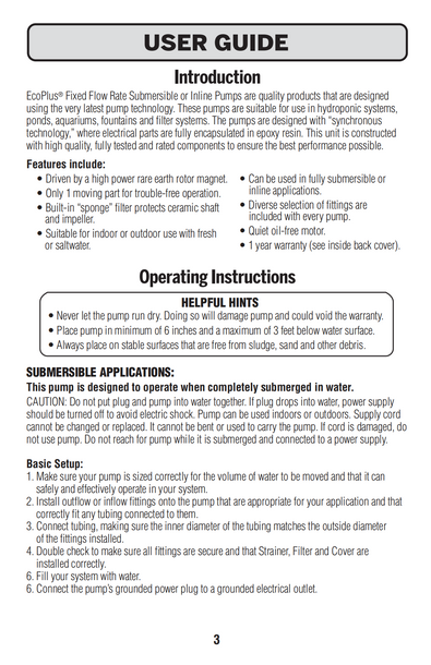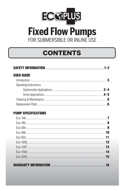 EcoPlus® Fixed Flow Submersible or Inline Pumps EcoPlus® Fixed Flow Rate Submersible or Inline pumps are great for a variety of application including hydroponics, aquariums, ponds and more. These magnetic driven pumps are constructed with a high quality rare earth rotor magnet which helps deliver an efficient, powerful and constant...